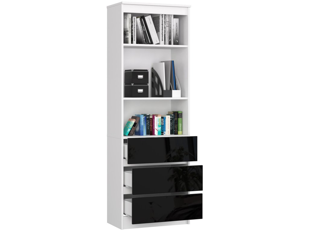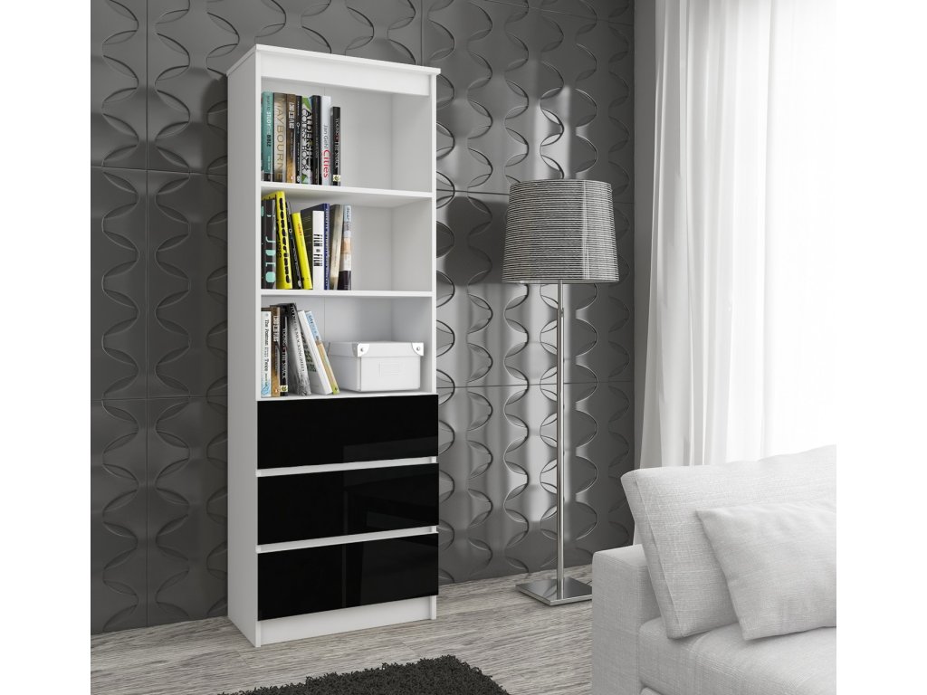 Regál CLAUDY60, bílá / černý lesk