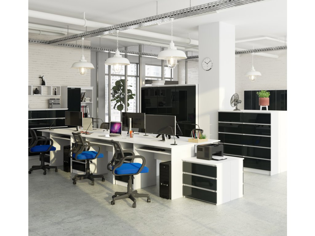 S kombinací bílé a grafitové lesklé barvy tato policová skříň nejen vynikne v jakémkoliv prostředí, ale také nabízí dostatek úložného prostoru díky svým 8 policím a praktické skříňce s plnými dvířky.