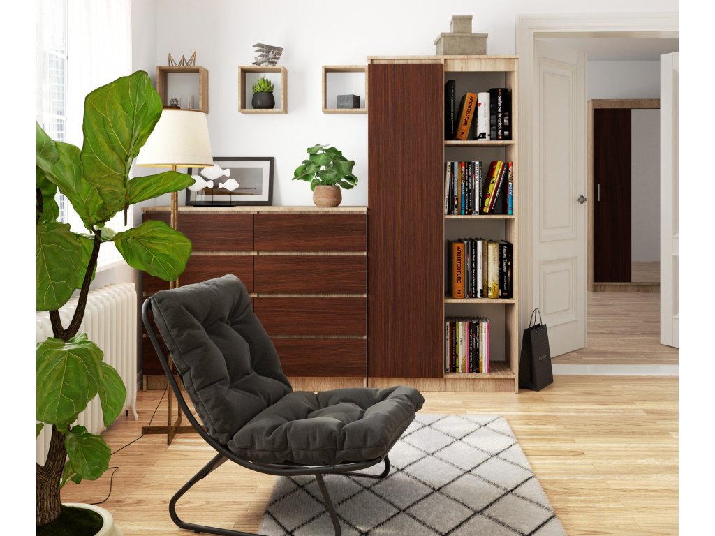 KATHRINE80: Elegantní kombinace dubu Sonoma a wenge v jedné policové skříni