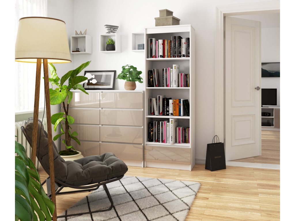 Hledáte regál, který dodá vašemu interiéru výraz a eleganci? Knihovna THANE60 v kombinaci bílé a capuccino lesku je tou správnou volbou pro ty, kteří chtějí spojit praktičnost s moderním designem.