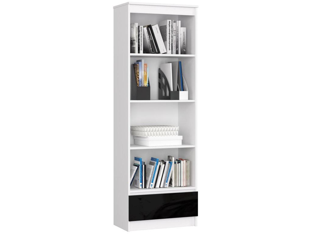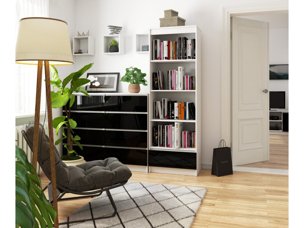 Regál THANE60 reprezentuje dokonalou směs elegance a funkčnosti. Černý lesklý dekor spolu s bílou barvou tvoří regál, který okouzlí svým vzhledem. Ideální pro obývací pokoj, kancelář či pracovnu.