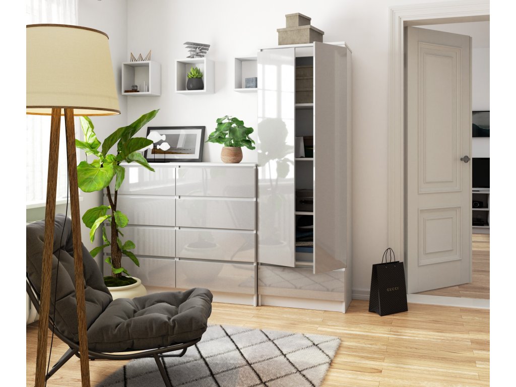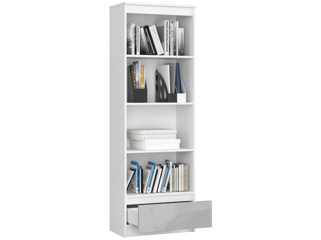 Regál THANE60 přináší působivý vzhled díky kombinaci čisté bílé a svítivého metalického lesku. Jeho design představuje dokonalou syntézu elegance a modernosti, čímž se stává ideální volbou pro každý obývací pokoj, kancelář nebo pracovnu.