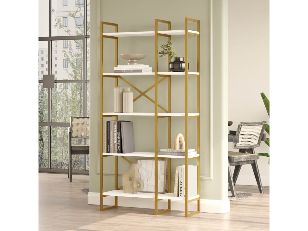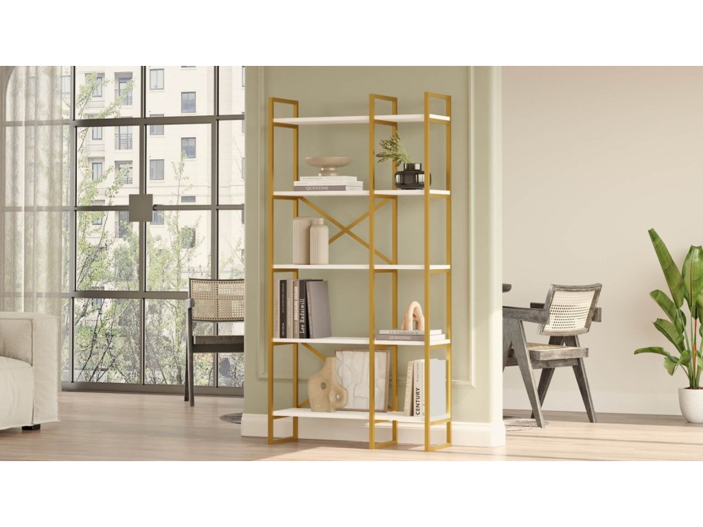 - Vybavení: S 5 policemi je zajištěno dostatečné místo pro knihy, dekorace a další předměty.