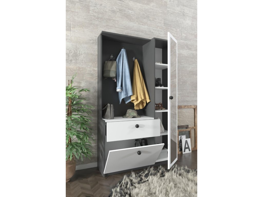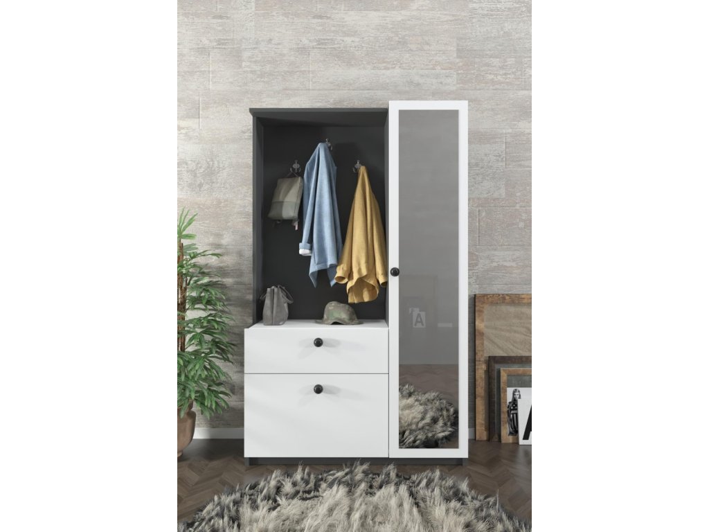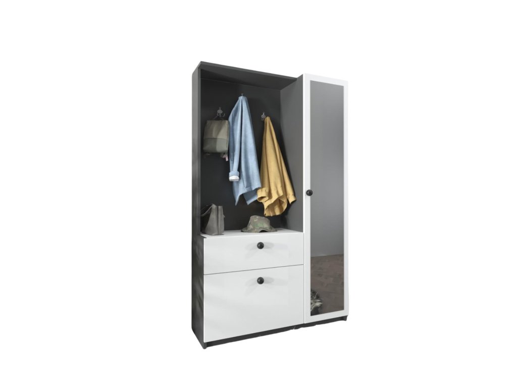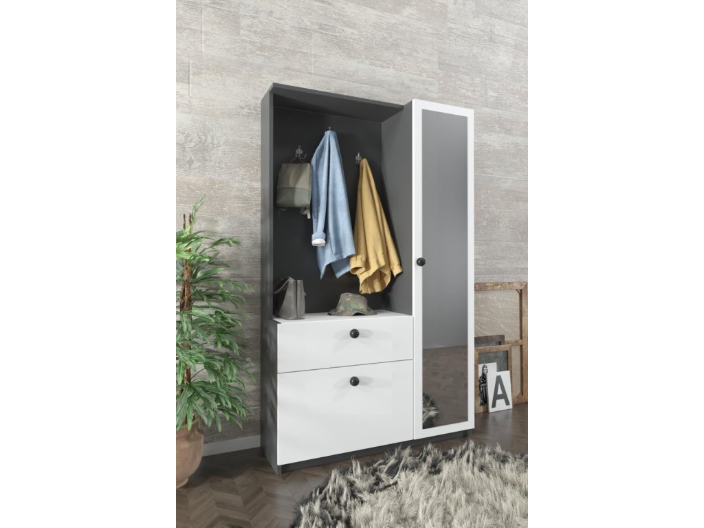 Představujeme vám předsíňovou sestavu REINNE v elegantní kombinaci bílé a antracitu. Tato stylová sestava přináší do vaší předsíně moderní a funkční design.