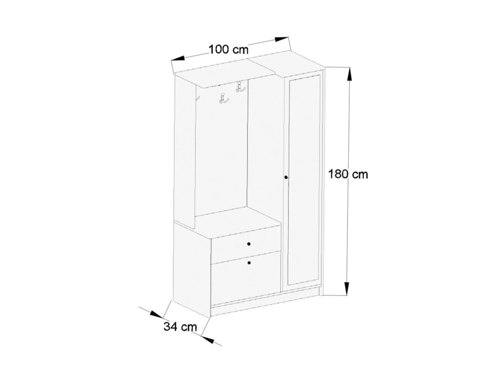| Sestava obsahuje: | věšáky, policová skříň se zrcadlem na dveřích, skříňka na boty se šuplíkem a výklopnou přihrádkou |