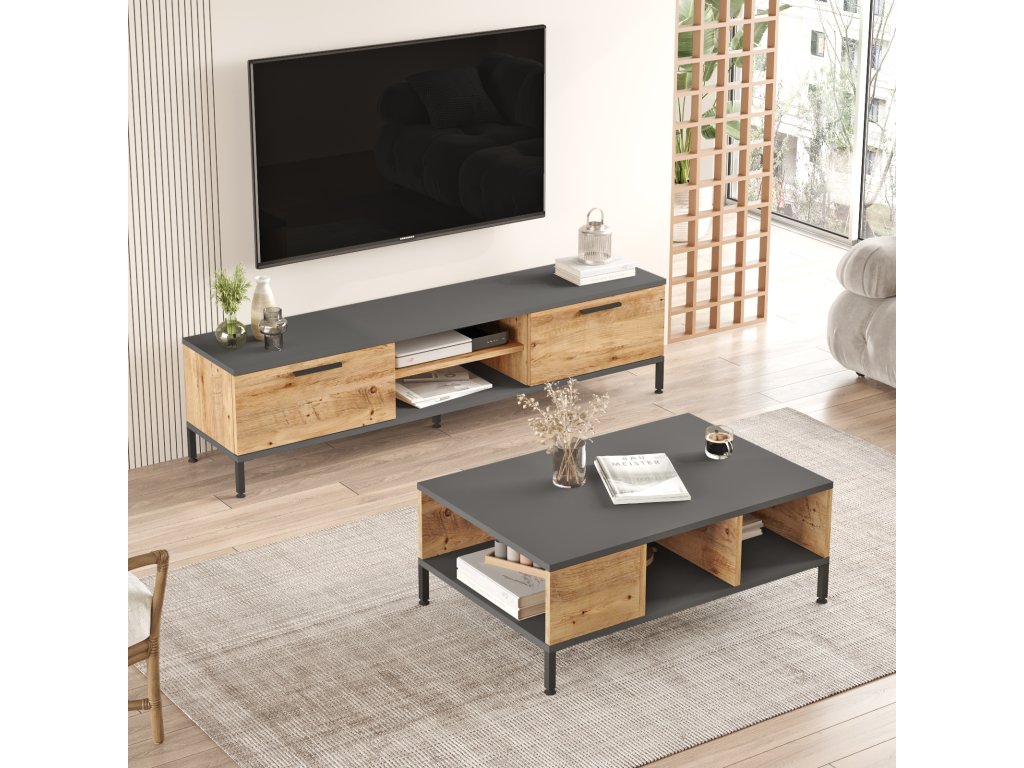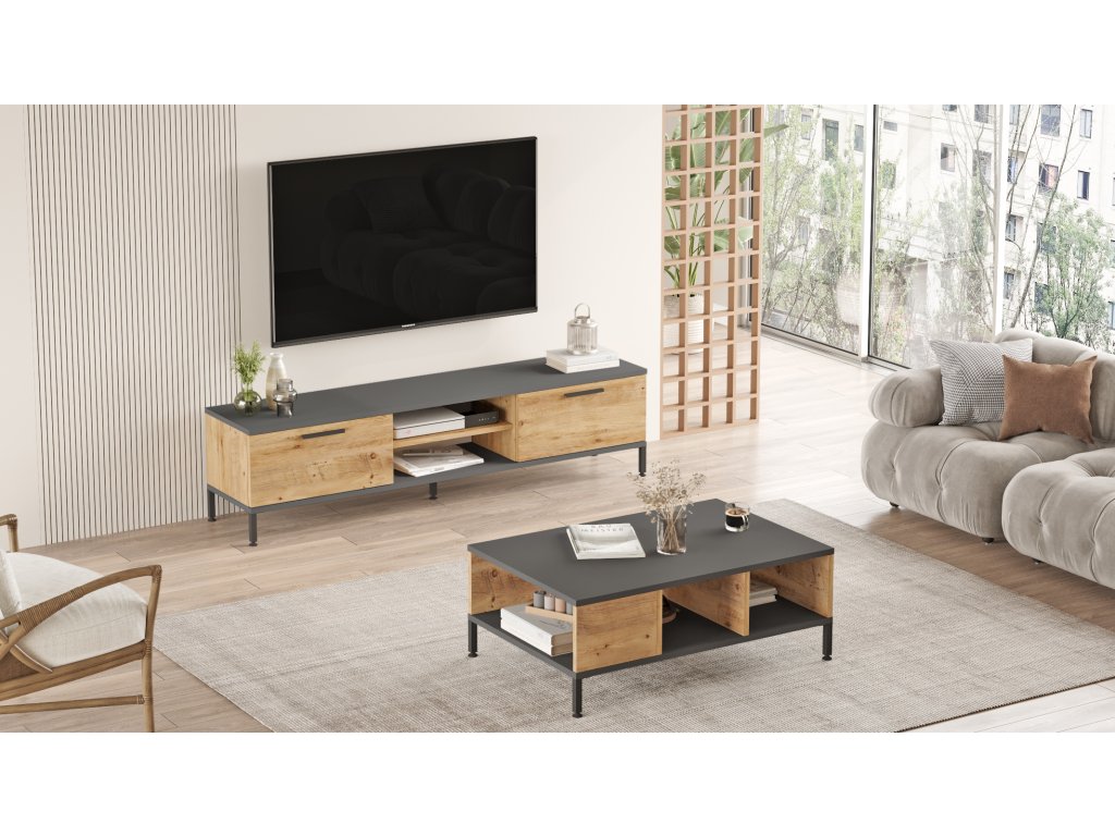 | Sestava obsahuje: | televizní stolek 160x35x39, 1cm, konferenční stolek 90x60x33, 1cm |
