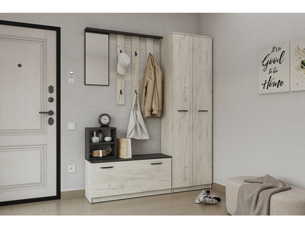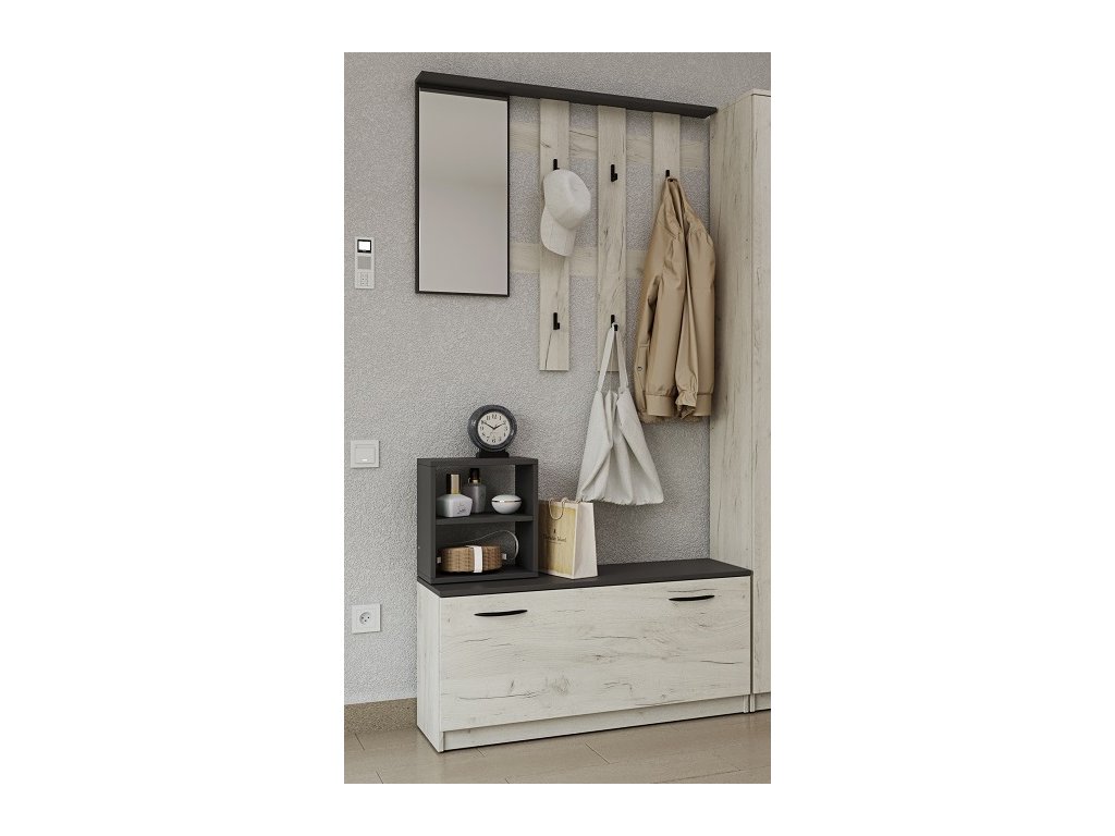 REMO je moderní nábytek do předsíně či chodby. Regál je v jednoduchém provedení, skládá se ze dvou částí.