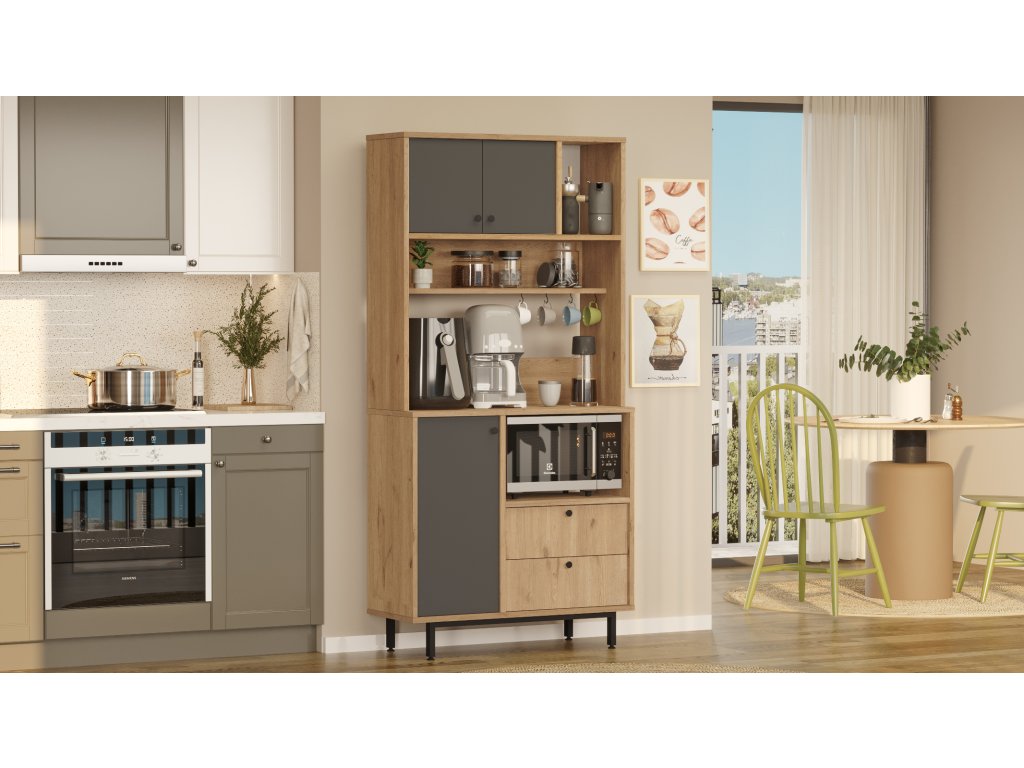 RENDY 4 policová skříň na mikrovlnku, sepet/antracit