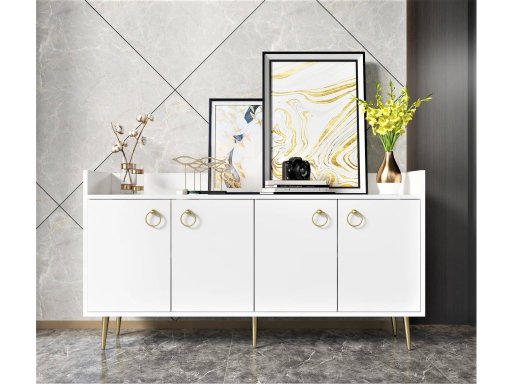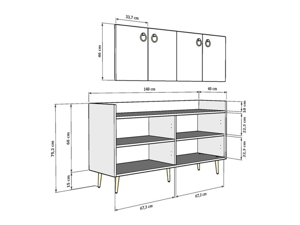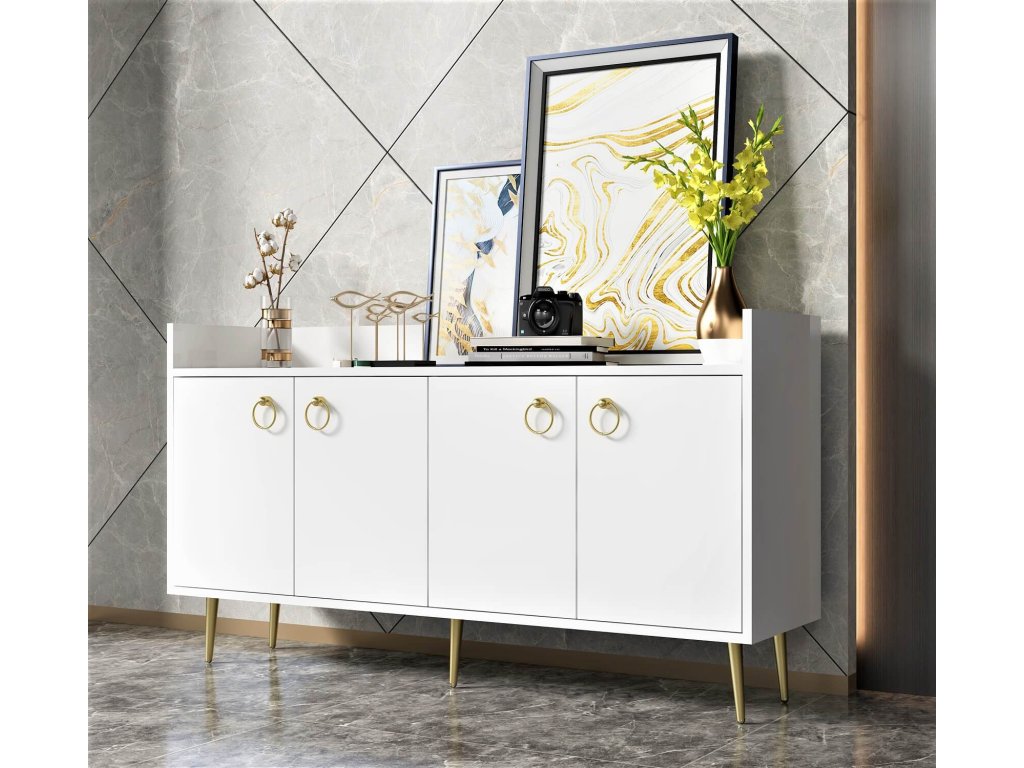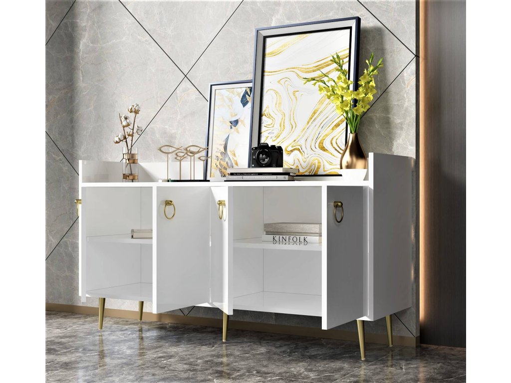 Skříňka RENO je ideálním doplňkem pro moderní obývací pokoj, který kombinuje praktické úložné prostory s elegantním designem. Díky čtyřem plným dvířkům a odkládací polici nabízí dostatek místa pro všechny vaše potřeby, ať už jde o knihy, dekorace nebo další předměty.