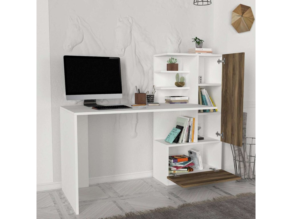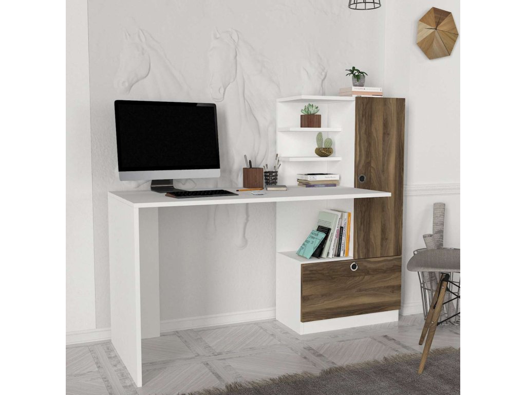 RHINOS psací stůl, bílá/ořech