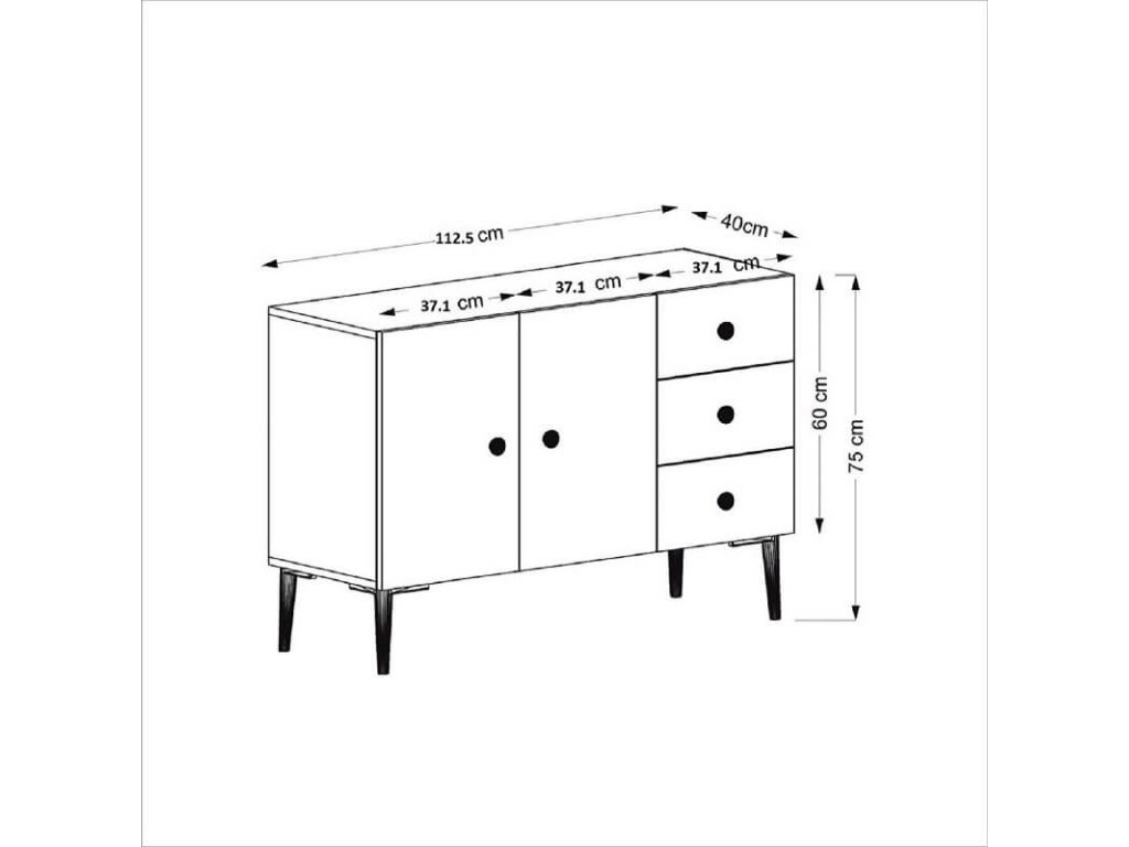 S rozměry 75 x 112.5 x 40 cm je komoda RICHARD ideální pro efektivní využití prostoru. Vyrobena z kvalitního LTD materiálu o tloušťce 18 mm, zajišťuje pevnost a dlouhou životnost. Plastové úchytky a plastové nožičky přidávají moderní vzhled a zajišťují stabilitu.