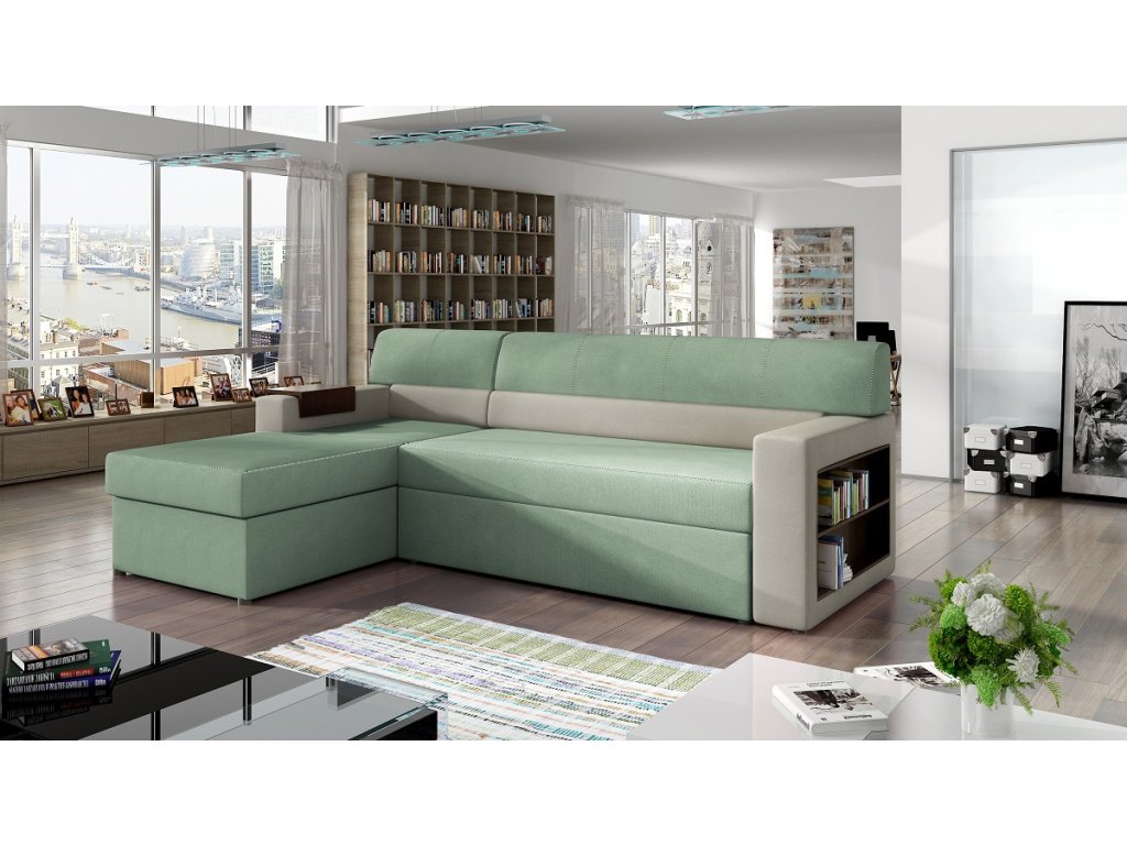 Rohová sedačka RIKI je v moderním a elegantním provedení. Umístění rohu levé. Je vhodná do moderních prostor obývacích pokojů. Má praktické opěrky rukou, které v sobě ukrývají úložný prostor pro knihy či časopisy. Sedačka je vhodná do moderních obývacích prostor. Je vyrobena z pur pěny a vlnovcové pružiny. Disponuje jedním praktickým úložným prostorem na ložní prádlo. Otevírání úložného prostoru je automatické typu "Delfin". Sedačka má také funkci rozkladu a je vhodná pro příležitostné spaní. Čalouněná je látkou Soro 36 / Soro 83. Hloubka sedačky 55 cm. Výška sedáku 46 cm. Spací plocha sedačky 210 x 125 cm. Sedačka je v barevném provedení: zelená/šedá. Sedačka je vhodná i pro náročnější uživatele. Dodáváme v demontovaném stavu.Doplňkové parametry