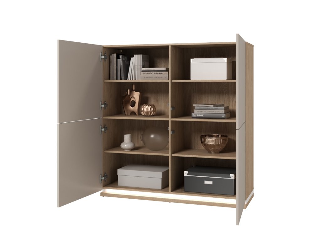 Komoda ROAD je elegantní a funkční kus nábytku, který skvěle doplní váš obývací pokoj. Nabízí dostatek úložného prostoru díky čtyřem plným dvířkům, za nimiž snadno uschováte vše potřebné. Moderní design a kvalitní materiály zaručují dlouhou životnost a snadnou údržbu.