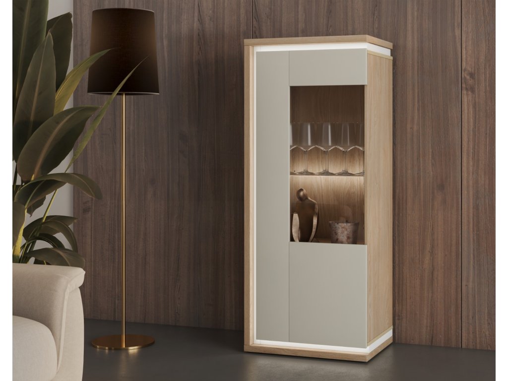 Moderní a elegantní vitrína ROAD se hodí do jakéhokoli interiéru a snadno se kombinuje s ostatním nábytkem. Prosklená dvířka dodávají nábytku lehkost a umožňují vystavení vašich oblíbených předmětů. Ideální volba pro ty, kteří hledají funkční a vkusné řešení pro svůj obývací pokoj!