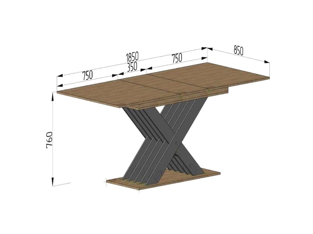 Je vysoký 76 cm, díky funkci rozkladu si můžete zvětšit jeho plochu z původních 150 x 85 cm na 185 x 85 cm.