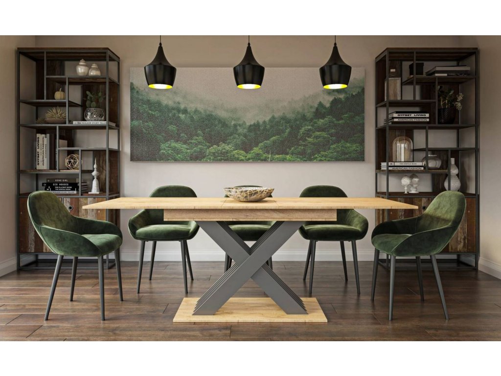 Moderní rozkládací jídelní stůl ROAD je spojením výjimečného designu a velmi příznivé ceny. Vaše kuchyně či jídelna se stane nepřehlédnutelnou. Zaujme zejména příjemným barevným provedením kraft zlatý s antracitem.