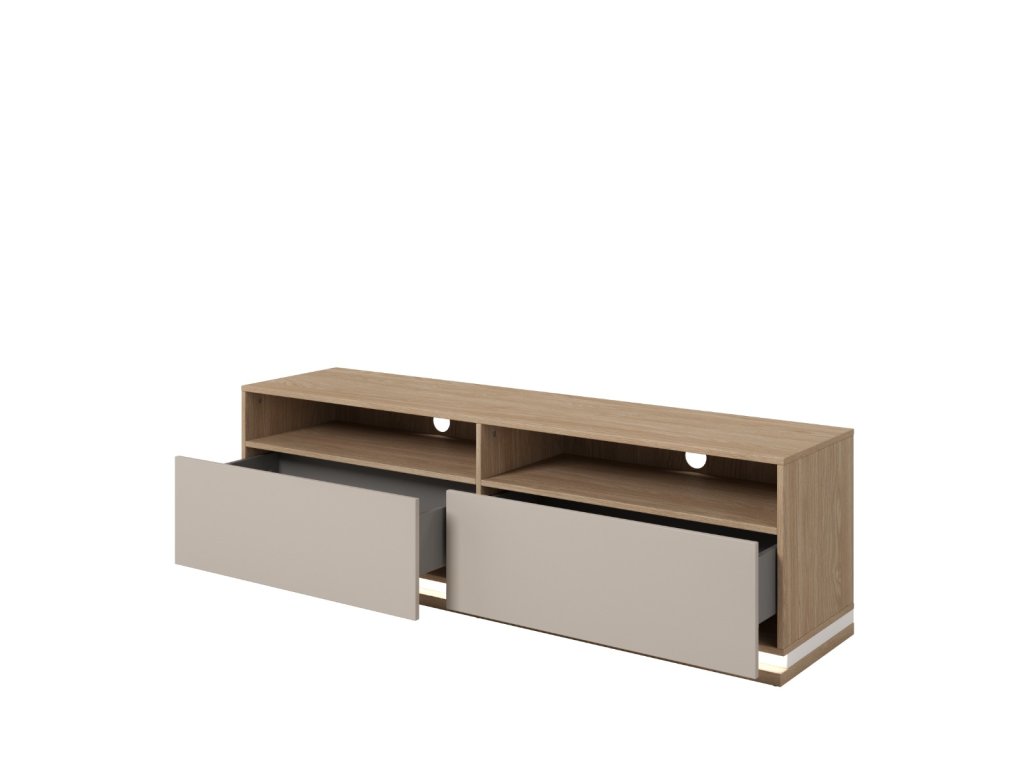TV stolek ROAD je ideální volbou pro moderní interiéry, kde se snoubí styl a praktičnost. Nabízí dostatek úložného prostoru díky dvěma zásuvkám a otevřenému regálku, který je vhodný pro multimediální zařízení nebo dekorace. Kvalitní LTD materiál zajišťuje odolnost a snadnou údržbu.