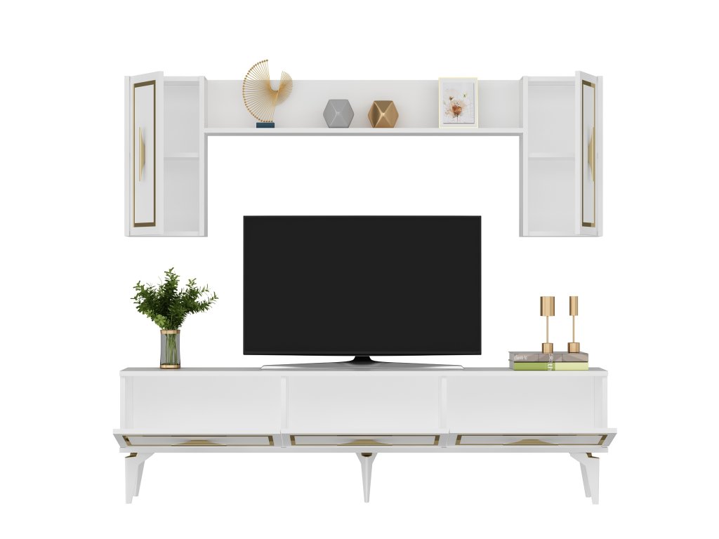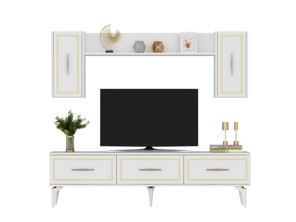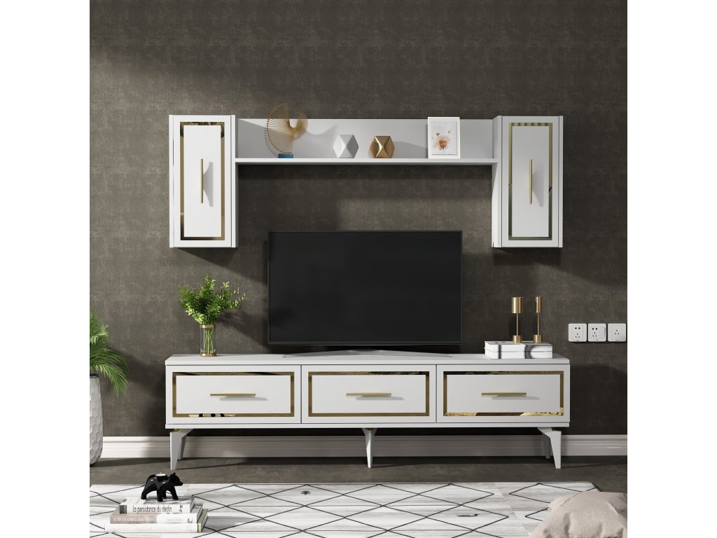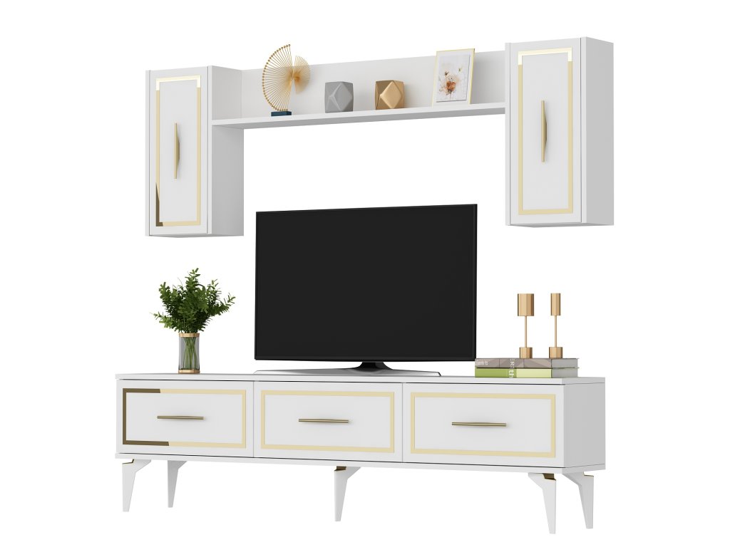 - Sestava obsahuje: TV stolek, nástěnná police s dvěma závěsnými skříňkami