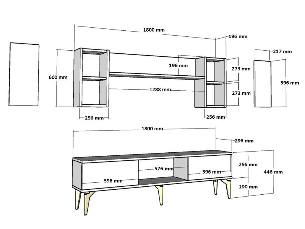 | Sestava obsahuje: | TV stolek, nástěnná police s dvěma závěsnýma skříňkama |
