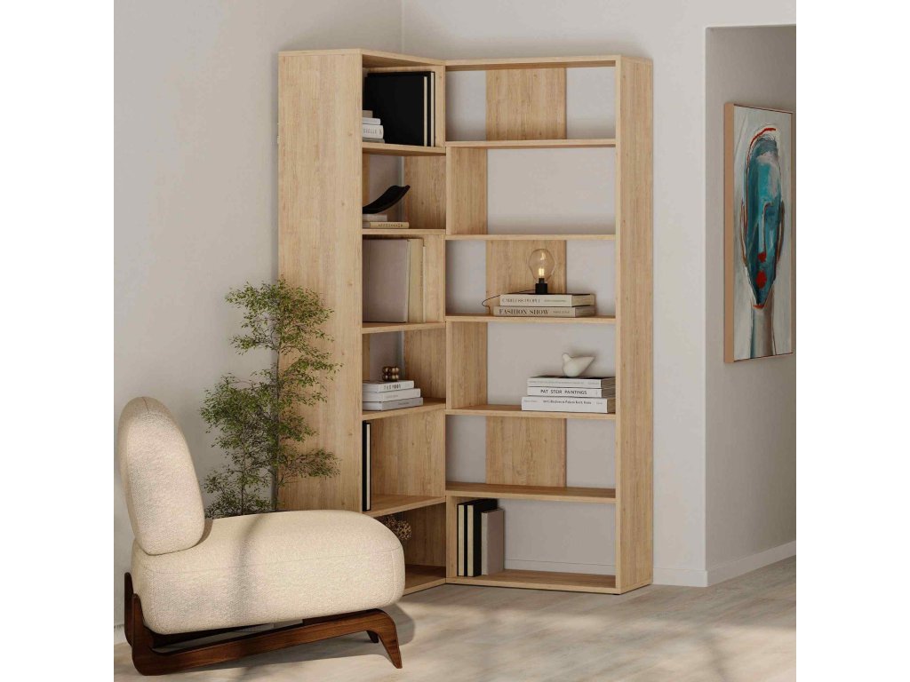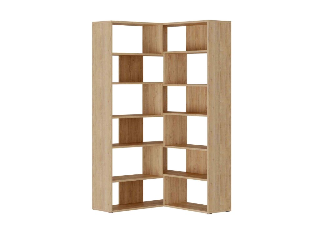 MAURICIO no.4: Rohový regál v odstínu dubu pro váš obývací pokoj