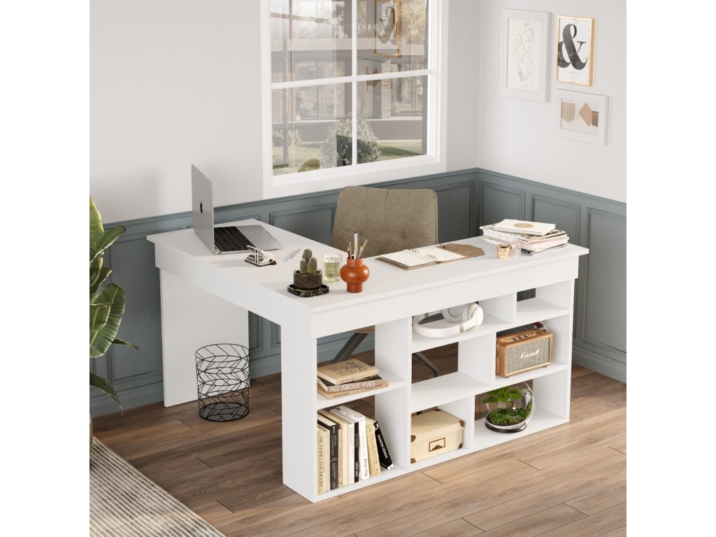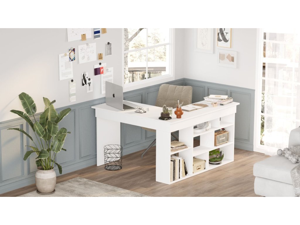 Rohový psací stůl CITY 5, bílý