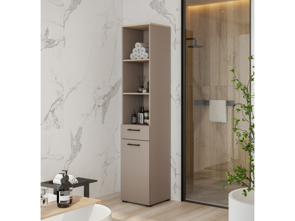 Koupelnový nábytek RONDA je v moderním a funkčním provedení, vhodný i do menších interiérů. Disponuje praktickým úložným prostorem, což potěší každou hospodyňku.