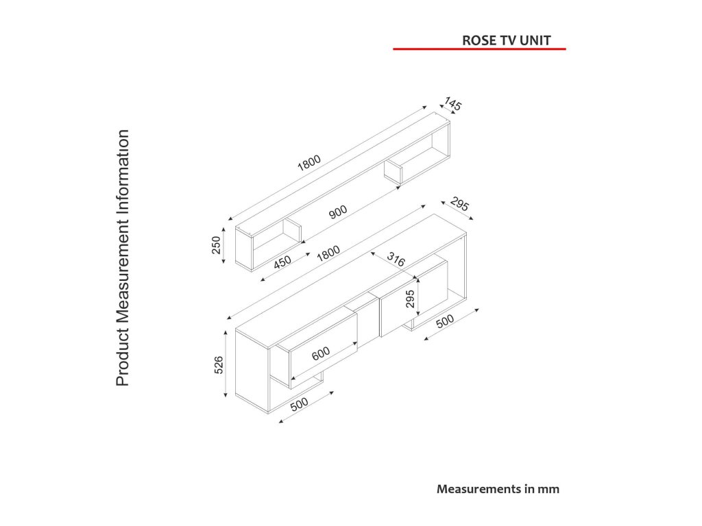 | Sestava obsahuje: | TV stolek š180Xh31,6Xv42, nástěnná police š180Xh14,5Xv22 |