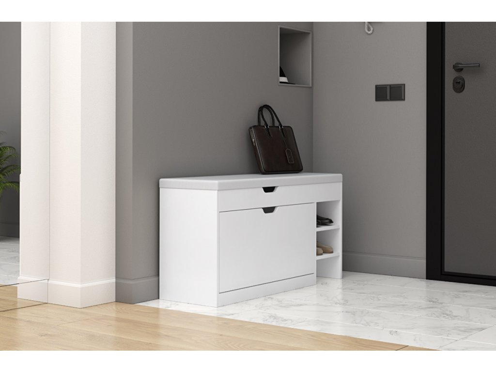 Barevné provedení v módní a stále žádané bílé barvě je ideální volbou. Opticky zvětšuje prostor a je nenáročné jej přizpůsobit dalším prvkům v domácnosti. Sedák je čalouněný syntetickou kůží v černé barvě.