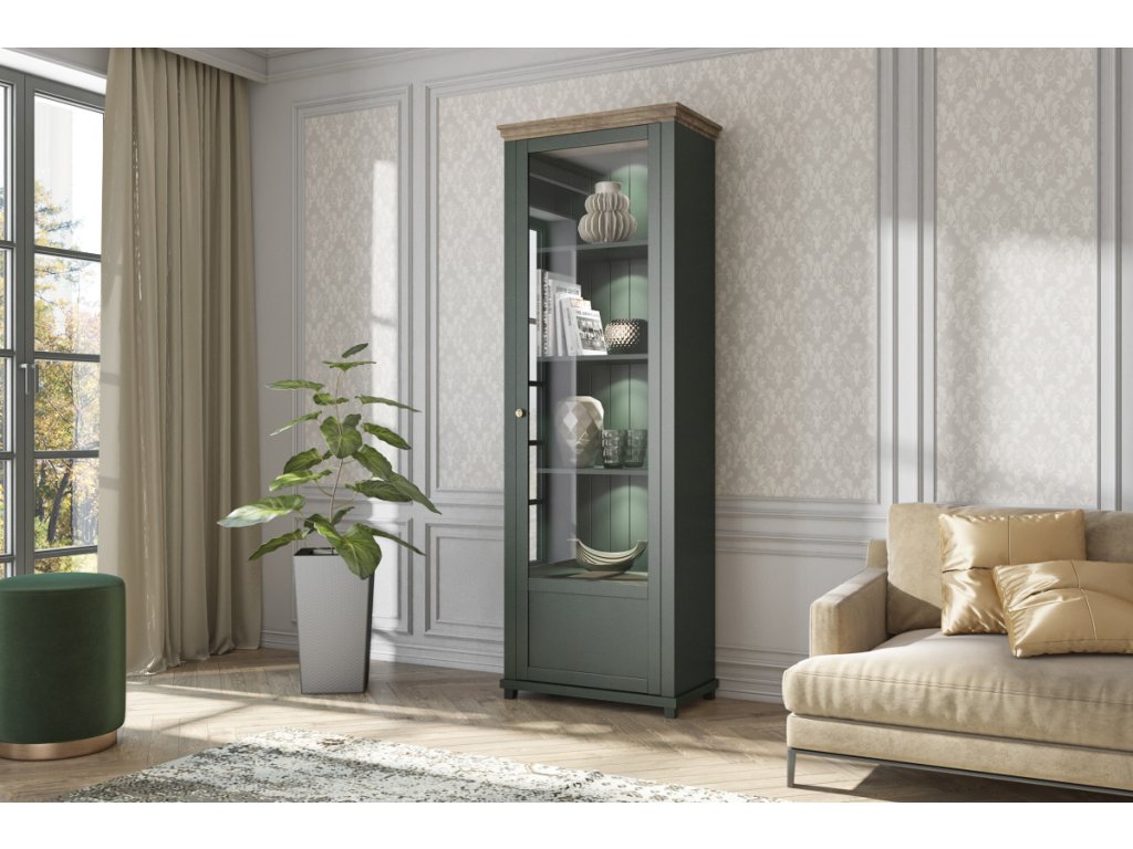 SABRILA prosklená vitrína 24ZRJU06 pravá, zelená/dub lefkas