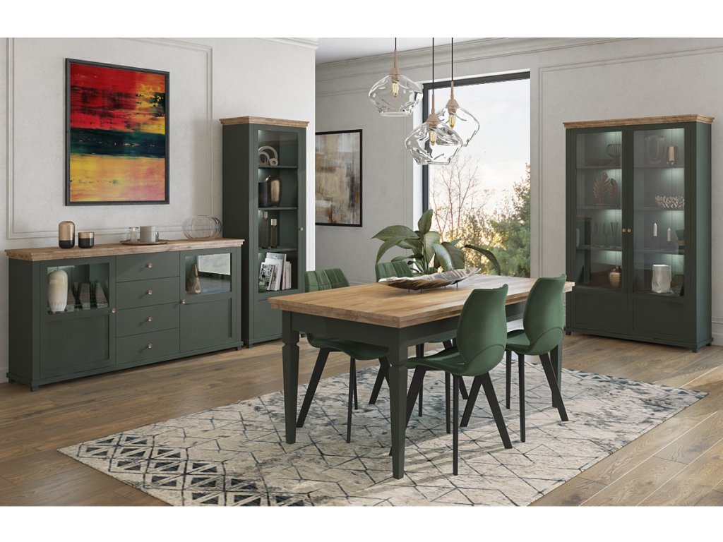 SABRILA rozkládací jídelní stůl 24ZRJU92, zelená/dub lefkas