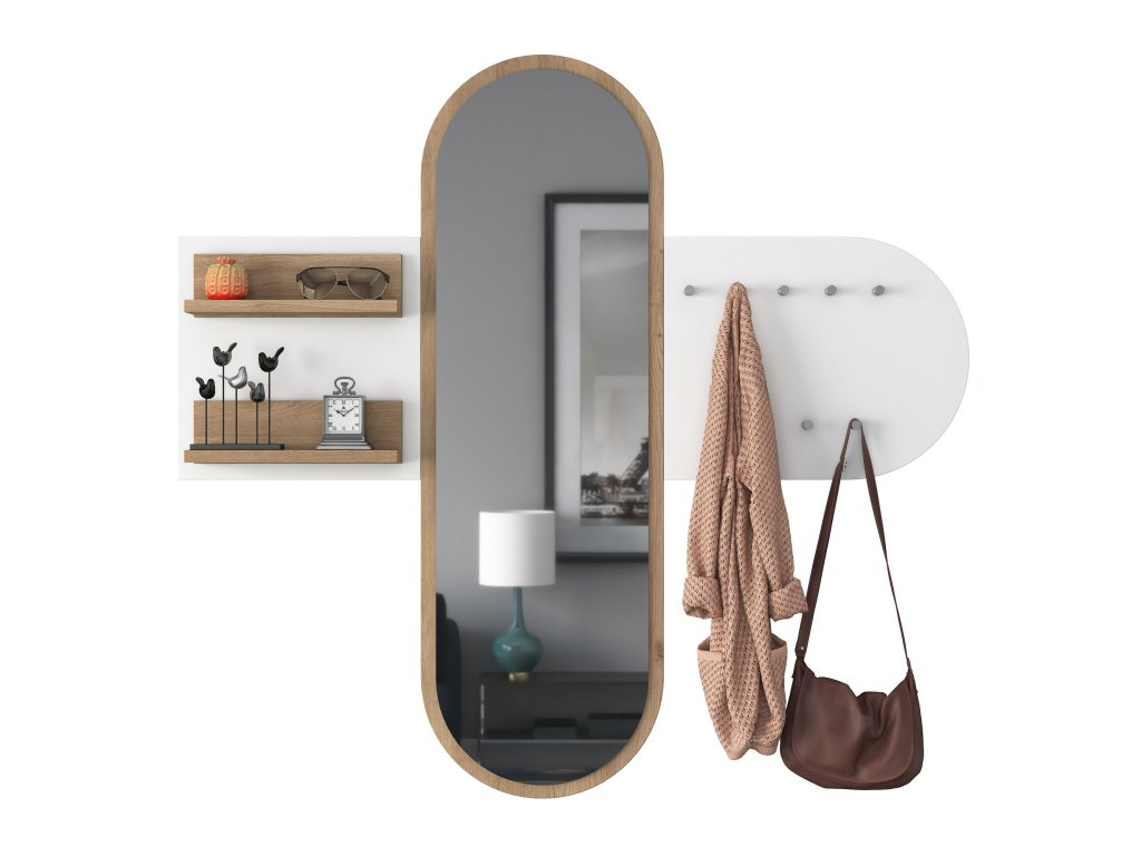 | Sestava obsahuje: | věšáky, zrcadlo, 2x nástěnná police |