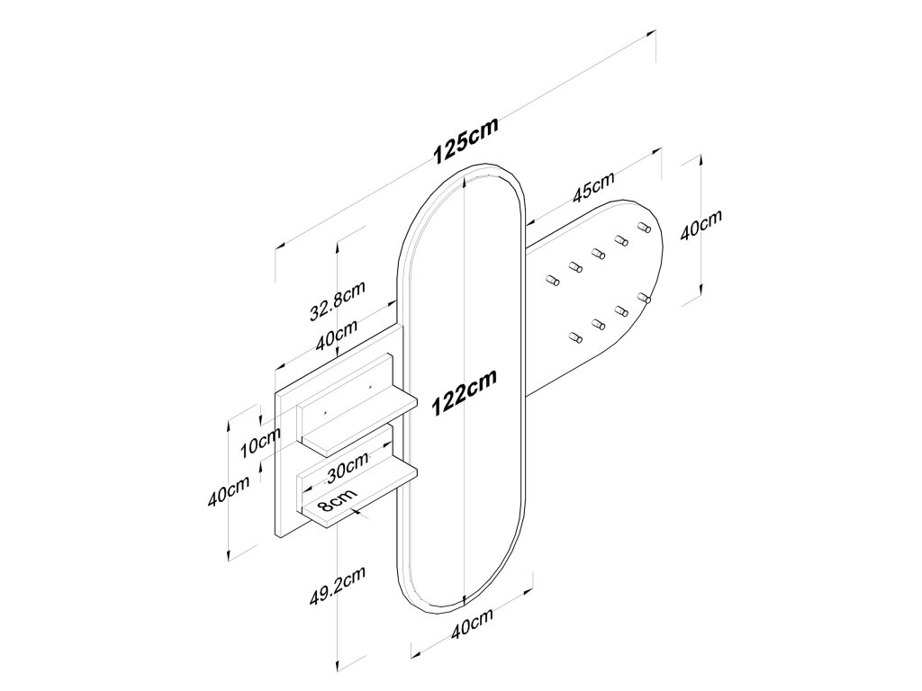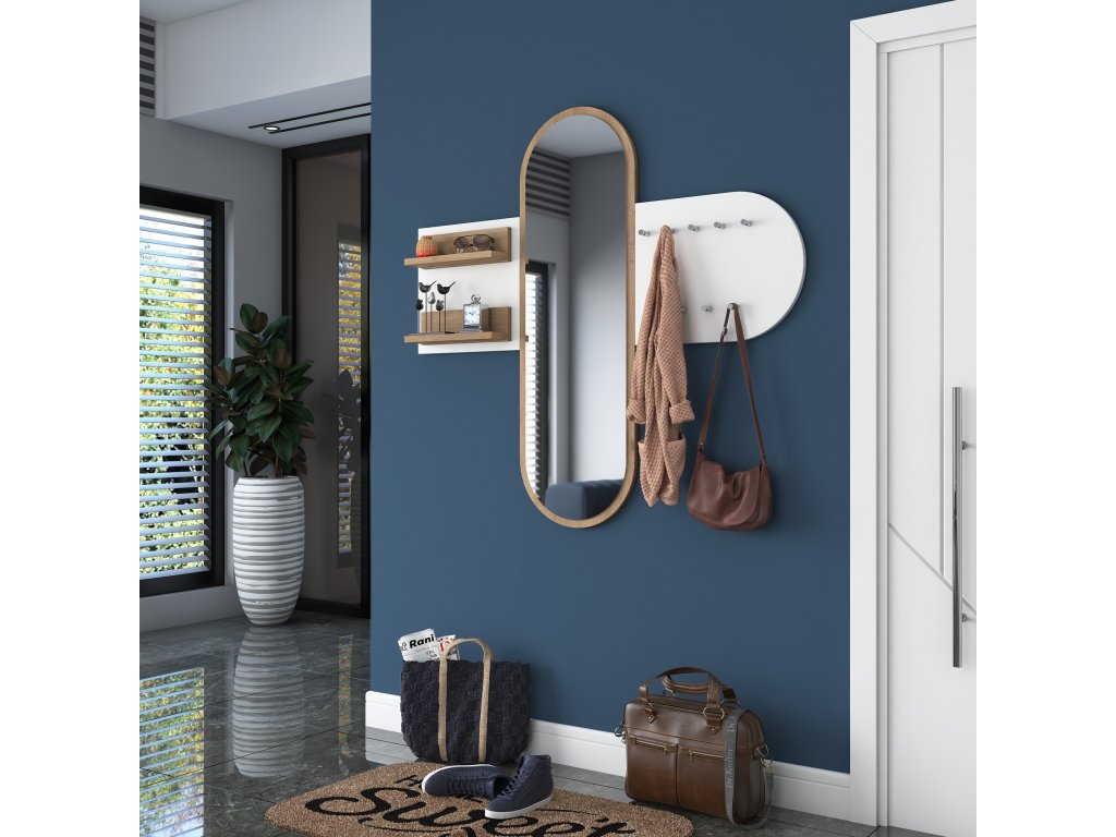 - 2 nástěnné police: ideální pro uložení klíčů, dekorací nebo drobností.