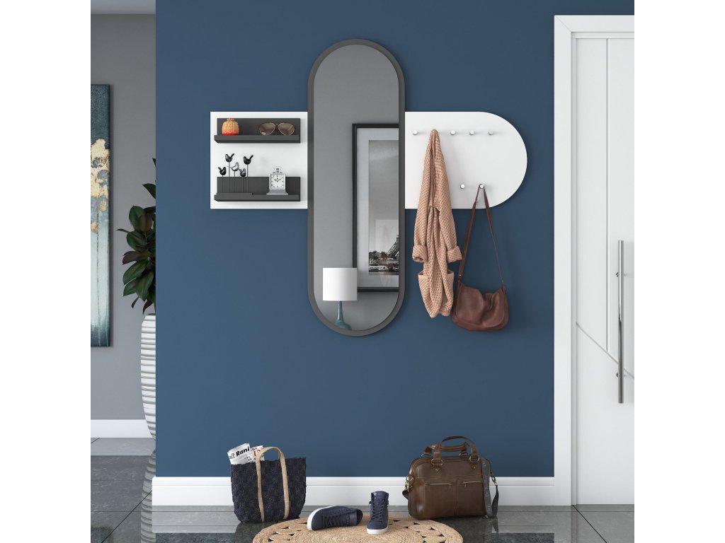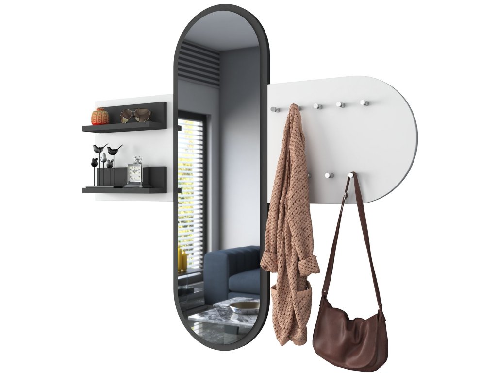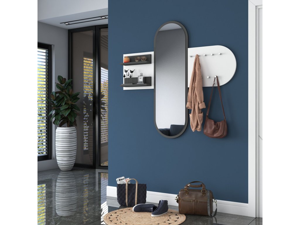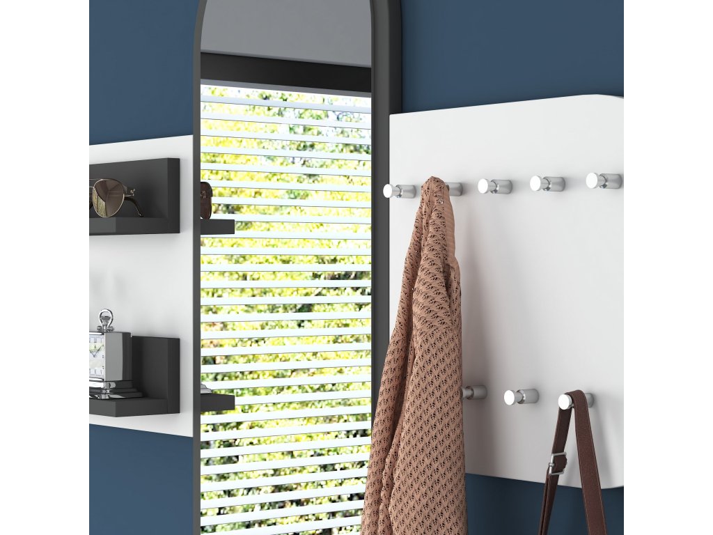 Předsíňová sestava SABRINA je navržena tak, aby splnila vaše nároky na organizaci prostoru a zároveň vytvořila stylový a moderní vzhled. Díky zrcadlu, věšákům a odkládací polici vám pomůže udržet předsíň přehlednou a upravenou.