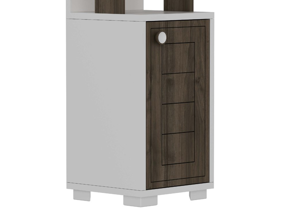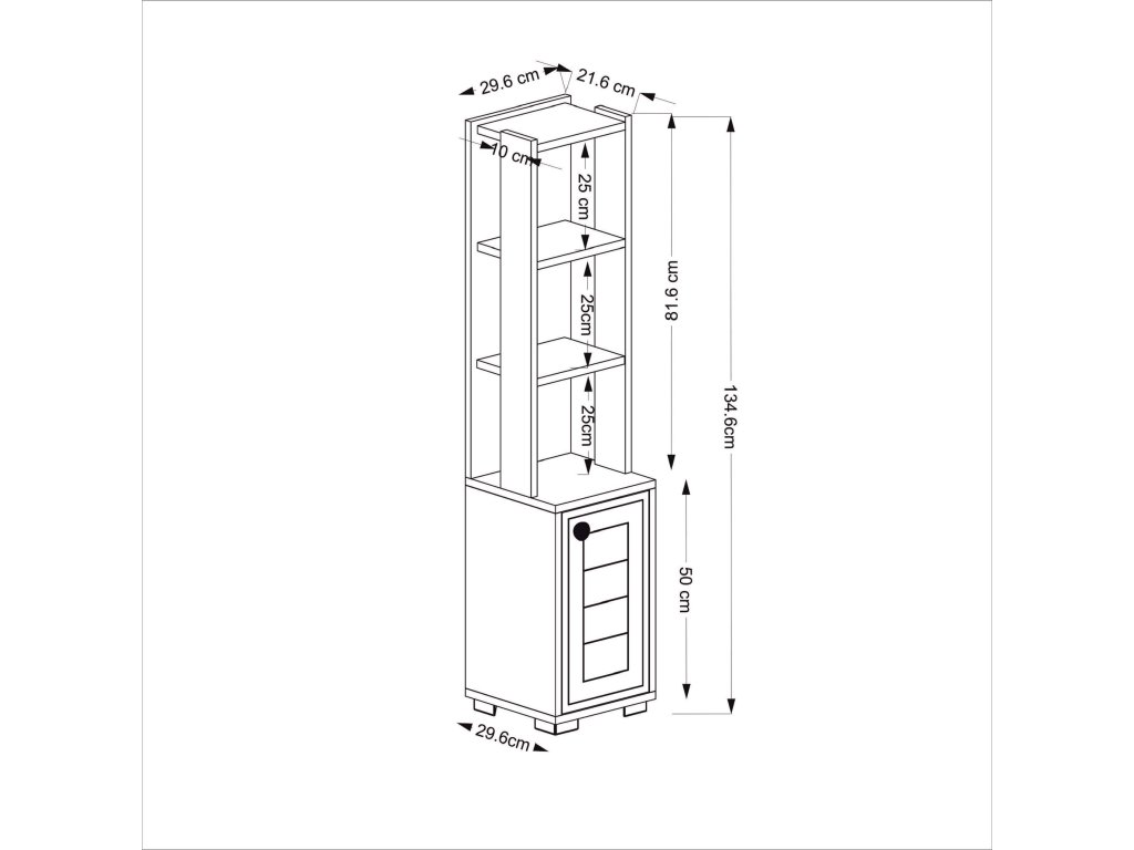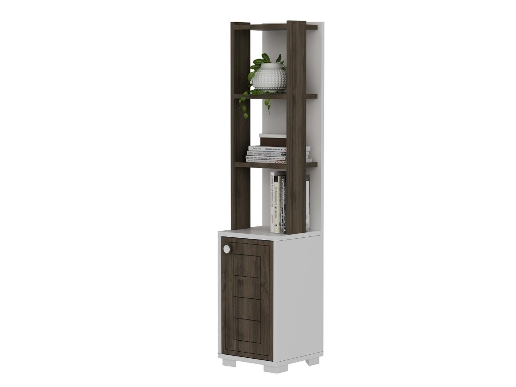 Knihovna SALEM je perfektním doplňkem pro moderní obývací pokoj. Díky svému úzkému designu a obdélníkovému tvaru je ideální pro menší prostory, aniž by slevovala z funkčnosti. Nabízí praktické úložné možnosti s jednou skříňkou a dvěma policemi, které poskytují dostatek místa pro vaše knihy, dekorace nebo jiné předměty.