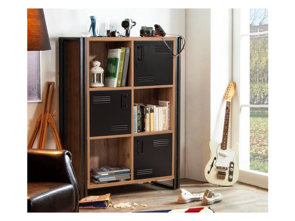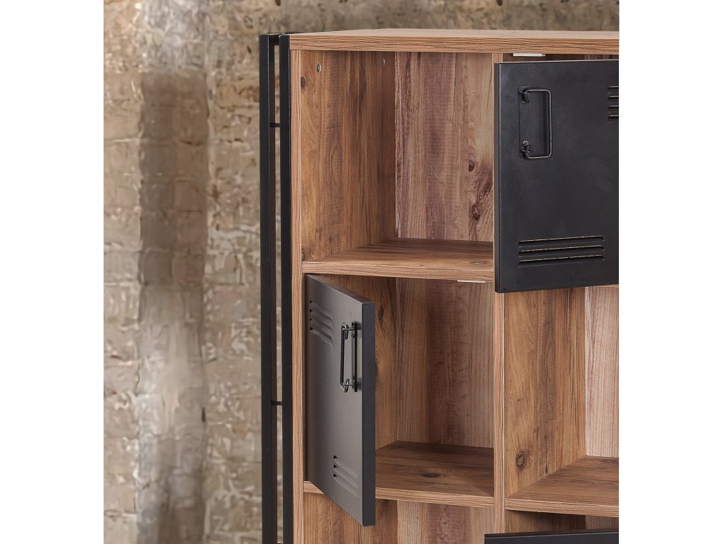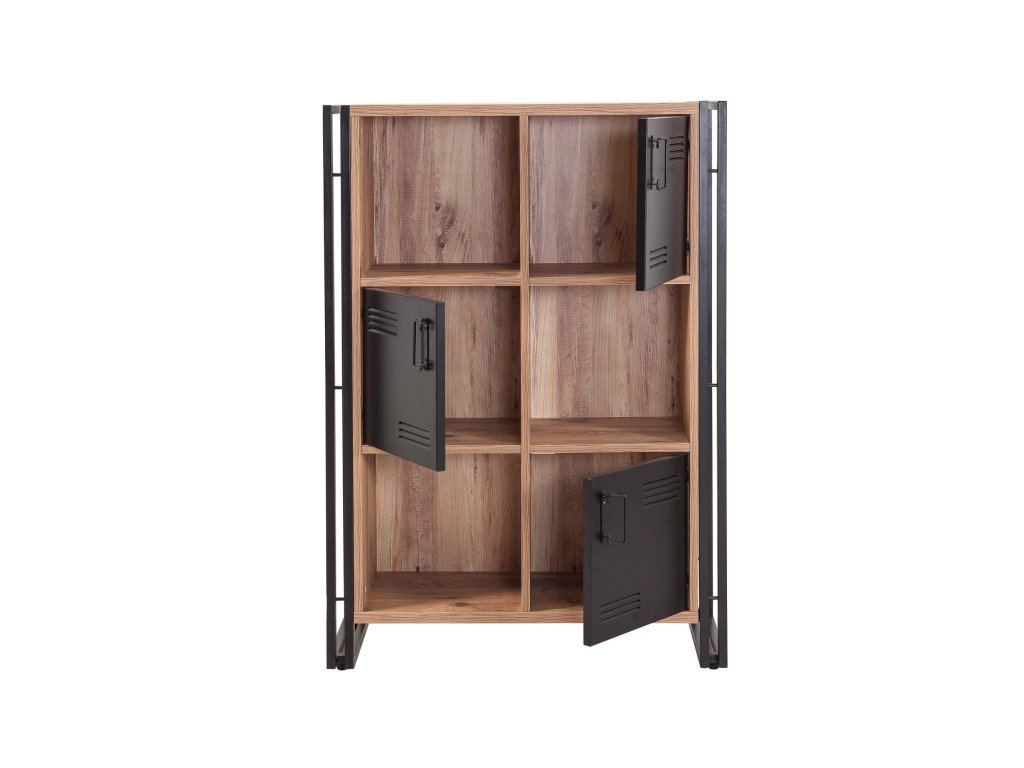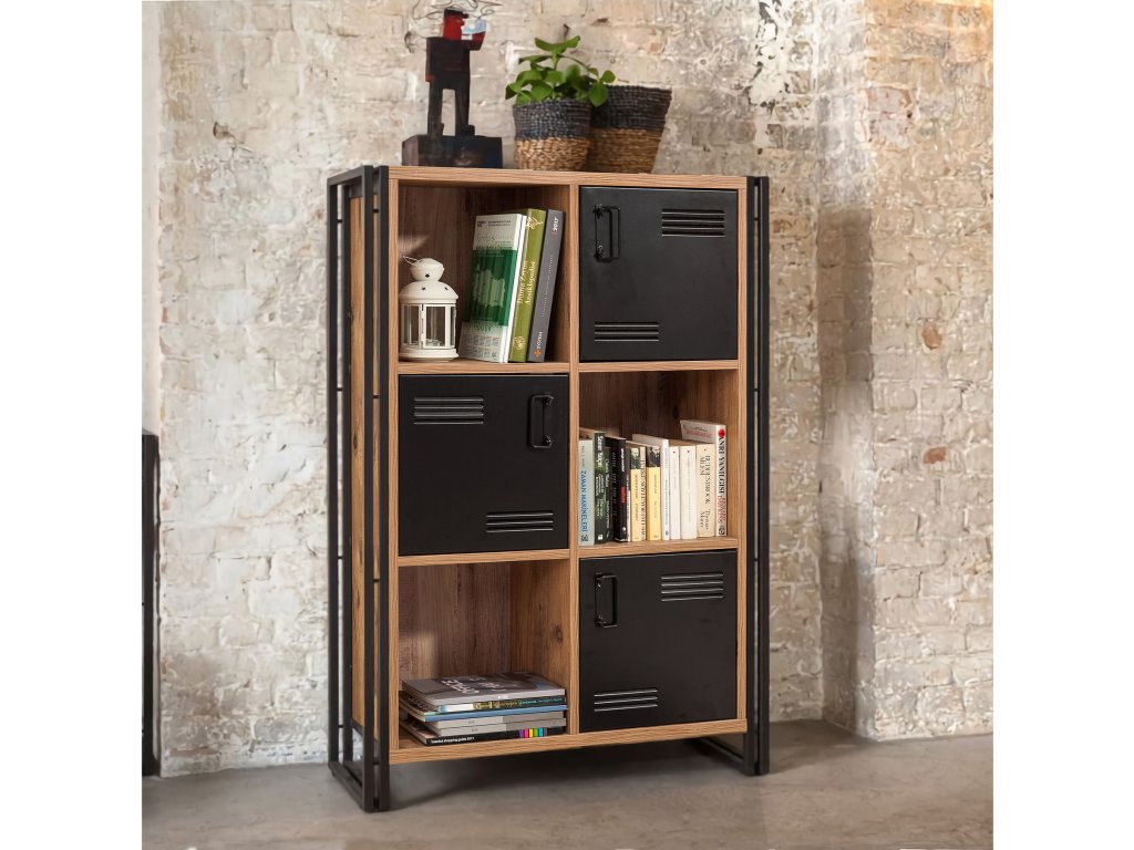 Knihovna SALLY spojuje praktické úložné řešení s moderním industriálním stylem. Díky kombinaci borovicového dekoru a černého kovu přidává do vašeho obývacího pokoje stylový a funkční prvek.