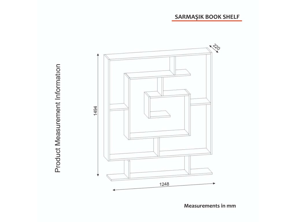 Regál SARMA vyniká svým moderním a praktickým designem, který se skvěle hodí do jakéhokoliv interiéru. Čtyři pevné police poskytují dostatek úložného prostoru pro vaše knihy, dekorace či kancelářské potřeby. Robustní LTD materiál o tloušťce 18 mm zajišťuje dlouhou životnost a stabilitu tohoto regálu.