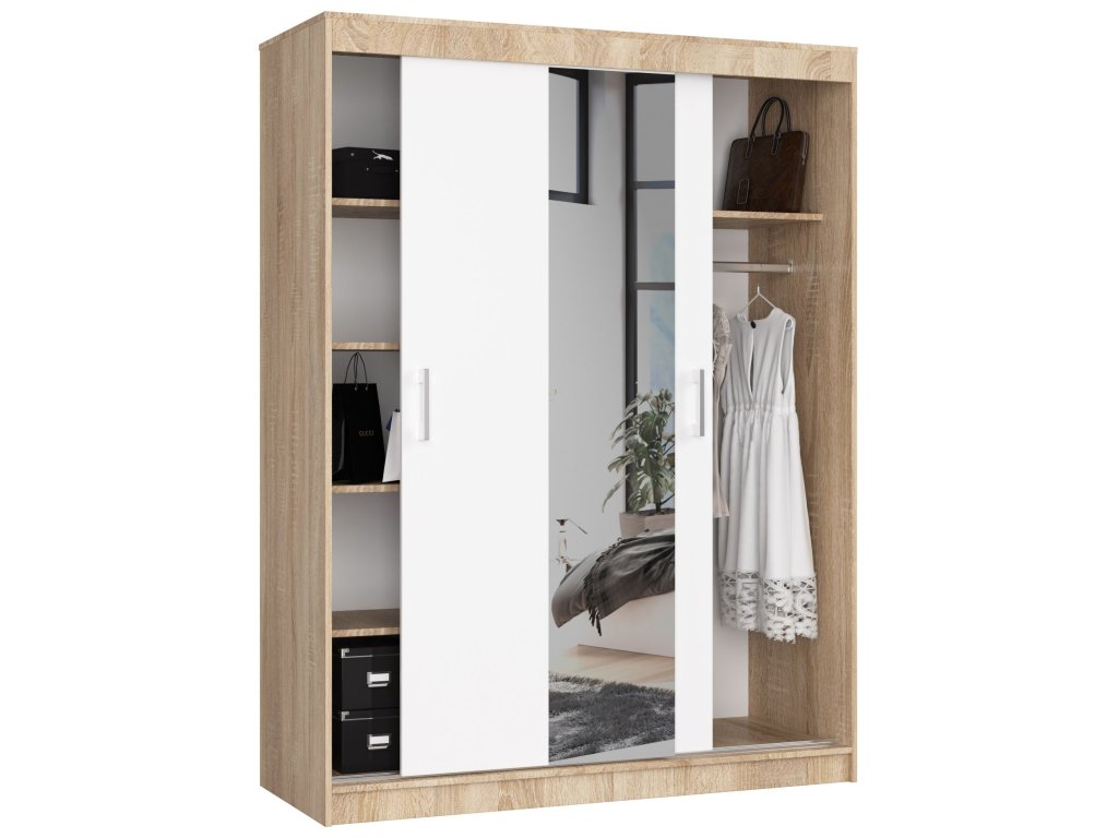 Představujeme AIRIZ150 - šatní skříň, která kombinuje eleganci dubu Sonoma s čistotou bílé barvy. Dokonalá volba pro každou ložnici, která hledá spojení moderního designu s funkcionalitou.