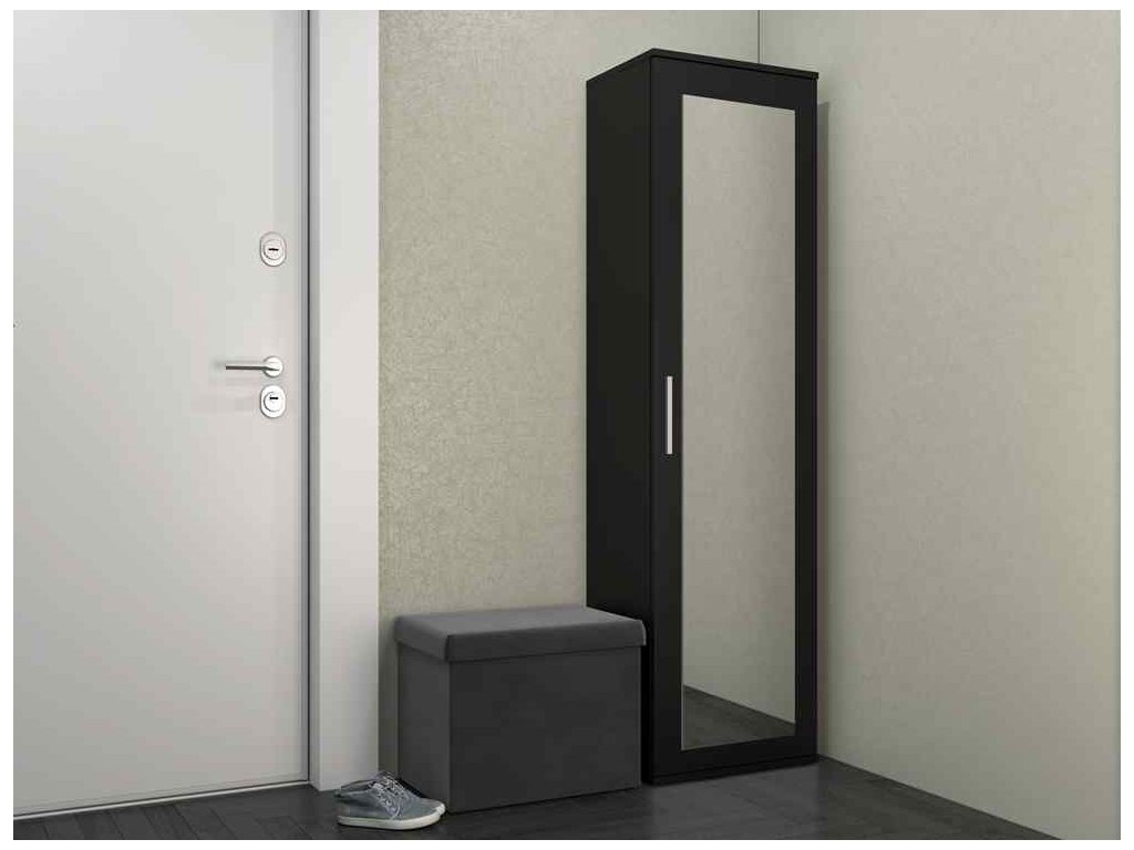 Tato šatní skříň disponuje 1 dveřmi pro snadný přístup k vašemu oblečení a doplňkům. Uvnitř najdete 2 police, které poskytují dostatek místa pro uspořádání vašich věcí. Navíc je vybavena zrcadlem a šatní tyčí, což vám usnadní připravování se.