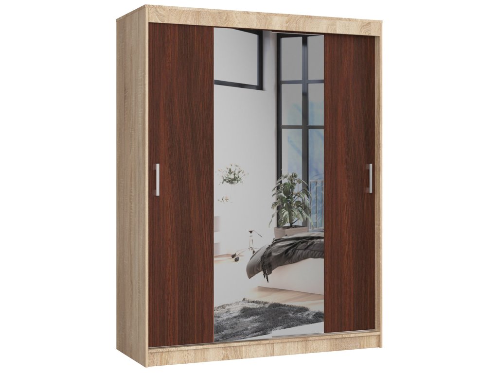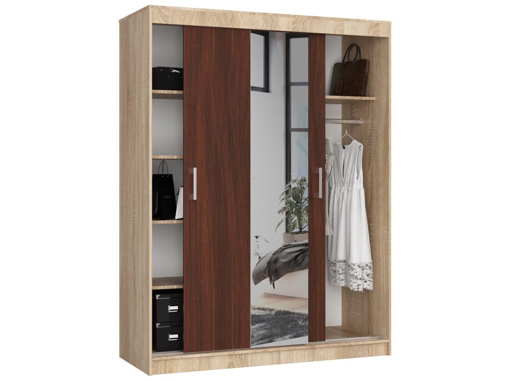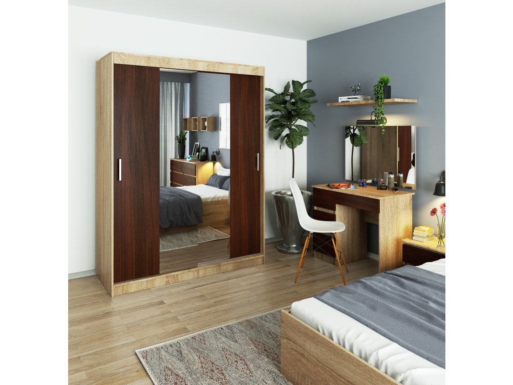 Šatní skříň AIRIZ150 v kombinaci dub Sonoma a wenge je skvělým řešením pro ty, kteří hledají spojení moderního designu a funkčnosti. S praktickým zrcadlem a šesti policemi je tato skříň nezbytností pro každou ložnici.