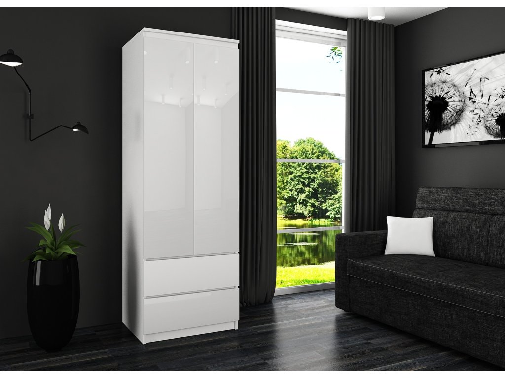 Tato šatní skříň je vyrobena z kvalitního MDF materiálu, což ji činí odolnou a dlouhodobě trvanlivou. Výrazná bílá barva s lesklým bílým dekorem dodá vašemu pokoji luxusní vzhled a jemně oživí prostor. Rozměry 180 x 60 x 51 cm zaručují, že skříň se dokonale vejde do různých prostorů a poskytne dostatek úložného prostoru pro všechny vaše potřeby.