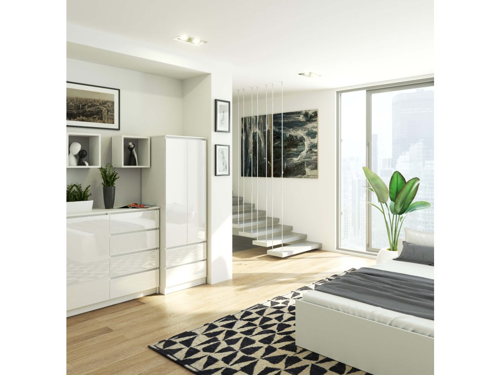 - Elegantní lesklý dekor: Lesklá bílá povrchová úprava dodá vašemu interiéru luxusní vzhled a moderní dotek.