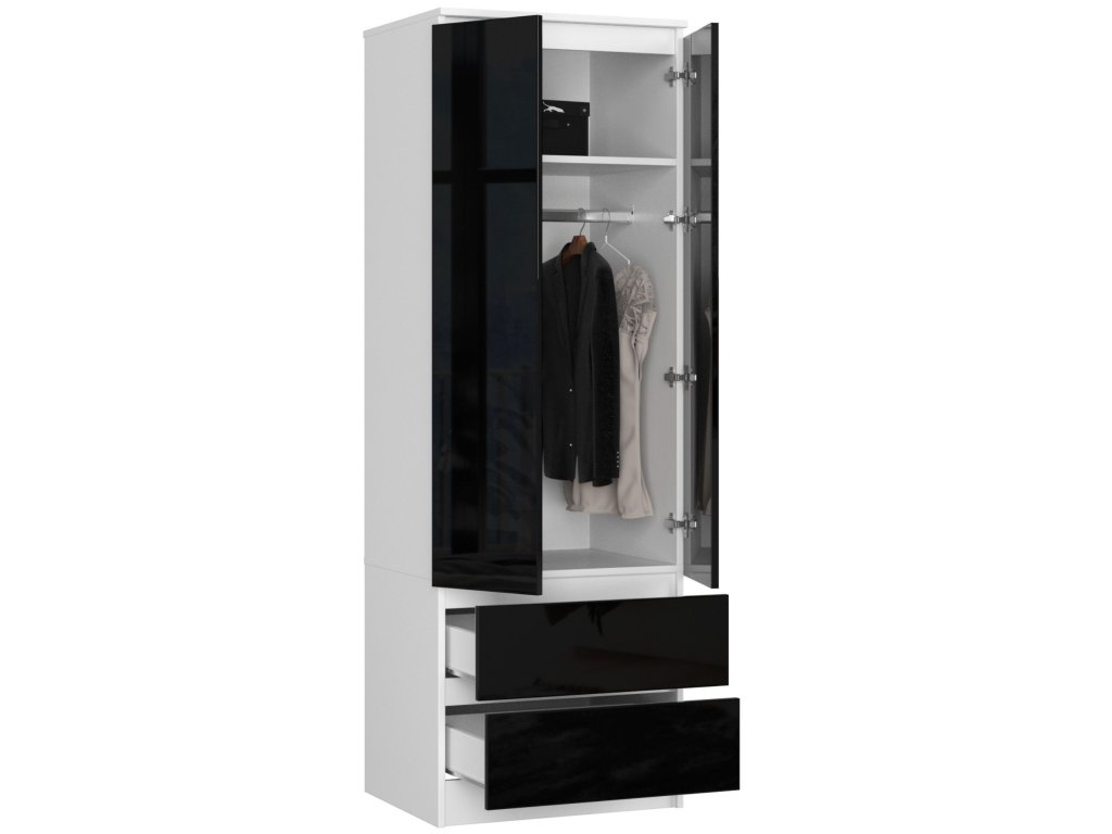 Šatní skříň AJA60, bílá / černý lesk