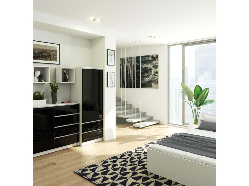 - Lesklý dekor: Elegance černého lesku přináší luxusní nádech do vaší ložnice.