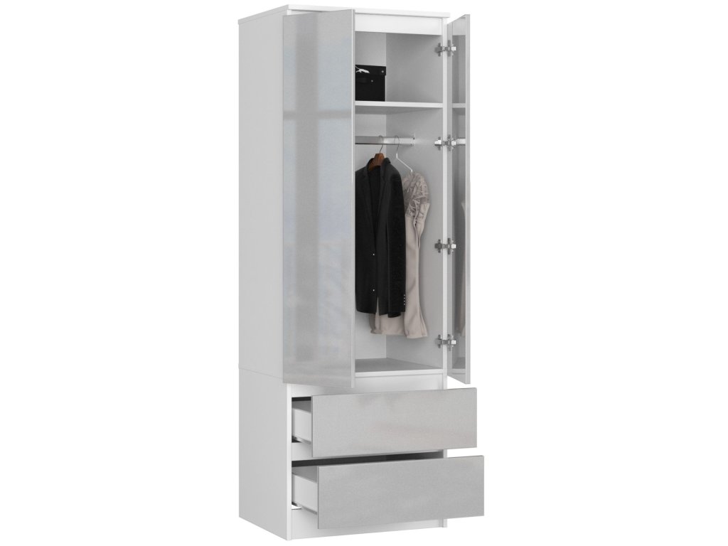 Šatní skříň AJA60, bílá / metalický lesk