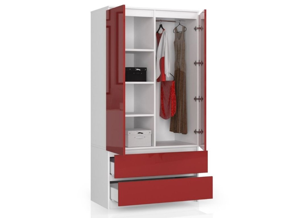 Šatníková skříň ALEXI90, bílá / červený lesk