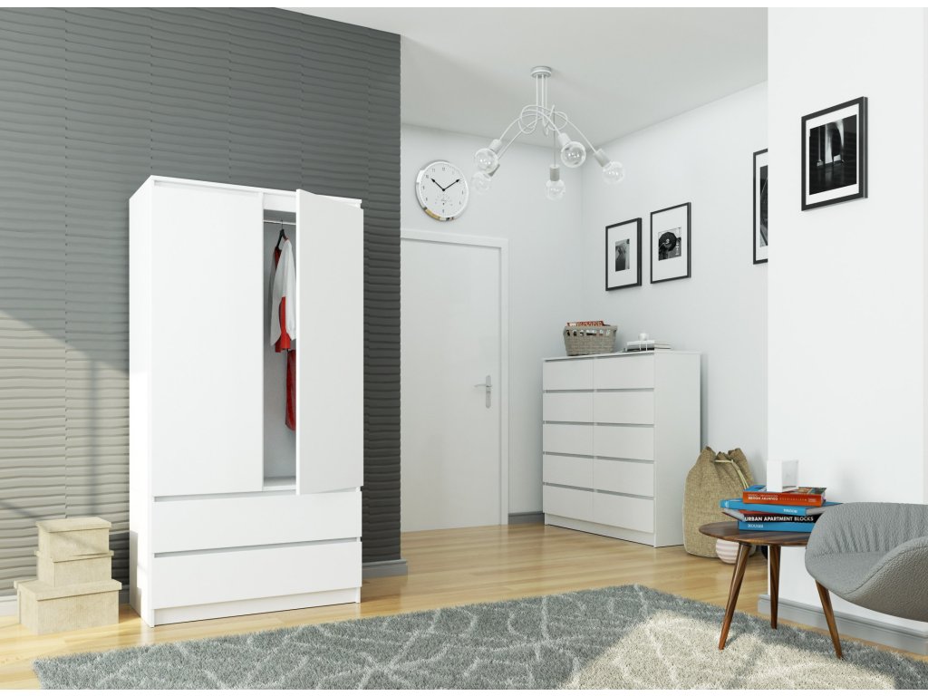 Chcete dokonale vypadající a funkční úložné řešení pro vaši ložnici? Představujeme šatní skříň ALEXI90 v čistě bílém provedení, která spojuje elegantní design s praktickou funkcionalitou.