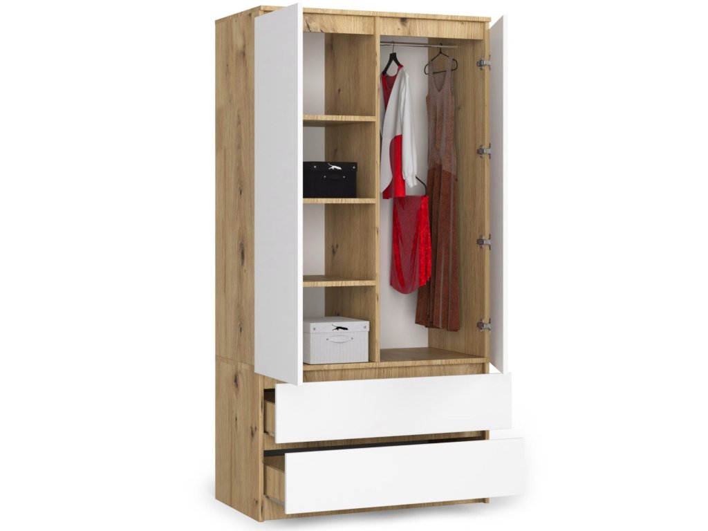 Představujeme vám ALEXI90 - šatní skříň, která přináší dokonalou harmonii mezi tradičním dubem artisan a čistou bílou. Ideální řešení pro každou ložnici, které kombinuje kvalitu, funkčnost a styl.