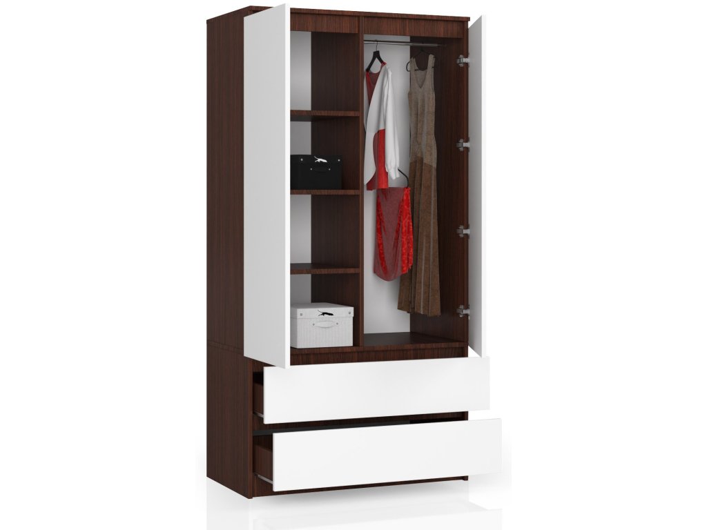 Očarujte svůj interiér s naší špičkovou šatní skříní ALEXI90. Moderní kombinace temného wenge a osvěžující bílé barvy přináší do vaší ložnice nejen styl, ale také praktičnost a funkčnost.