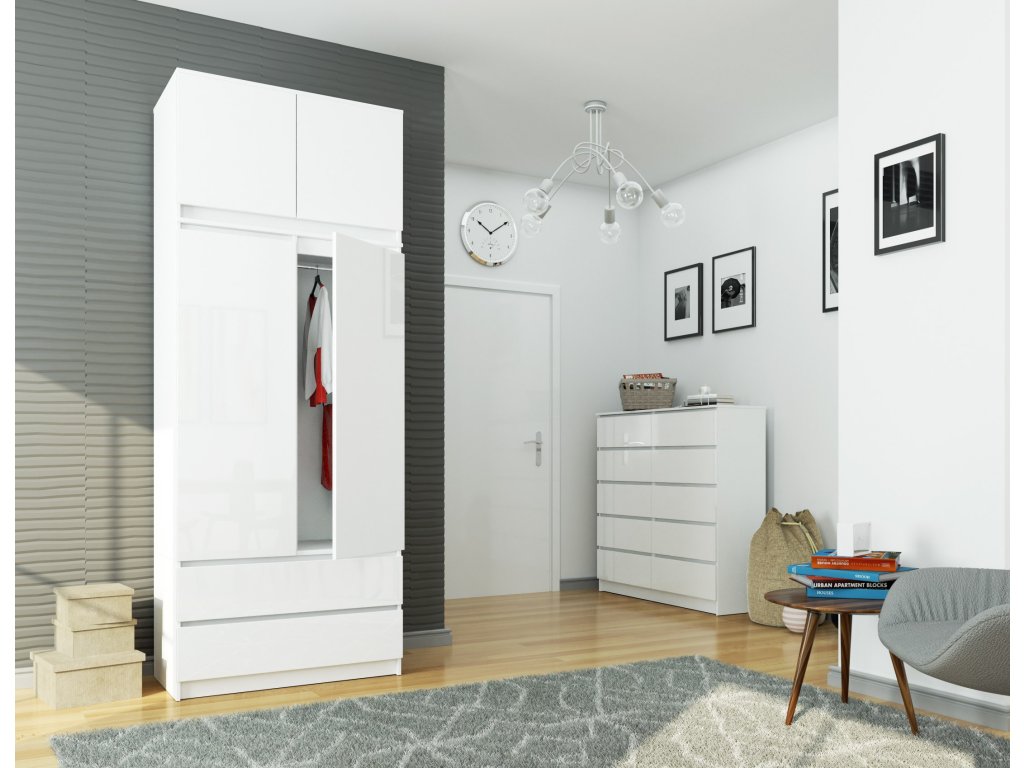 Šatní skříň POKI90: Luxusní kombinace bílé a lesku pro vaši ložnici