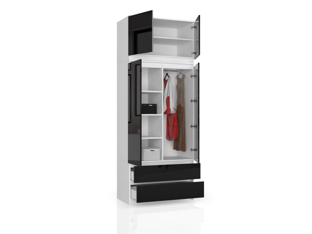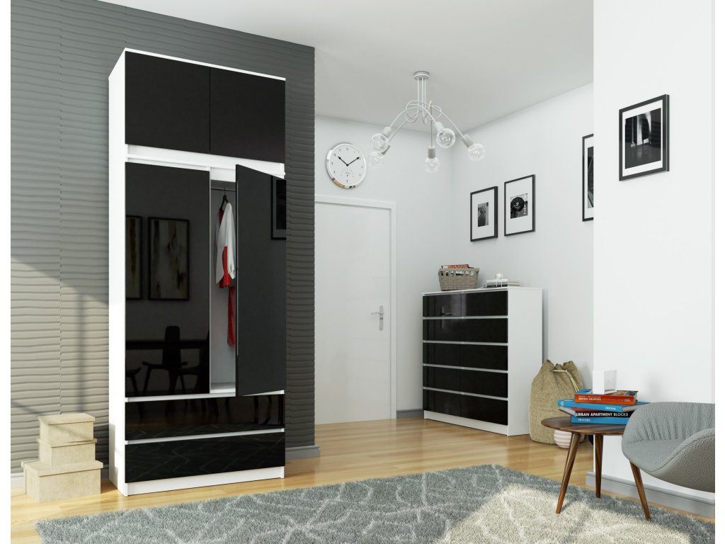 Šatní skříň POKI90, bílá / černý lesk
